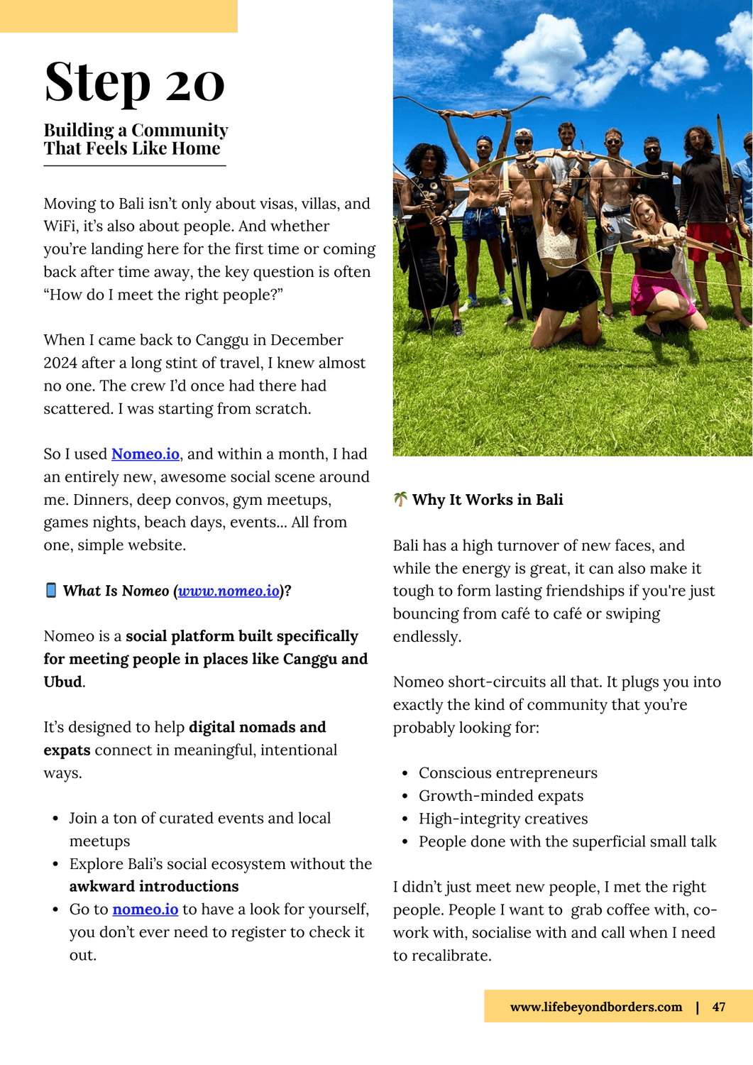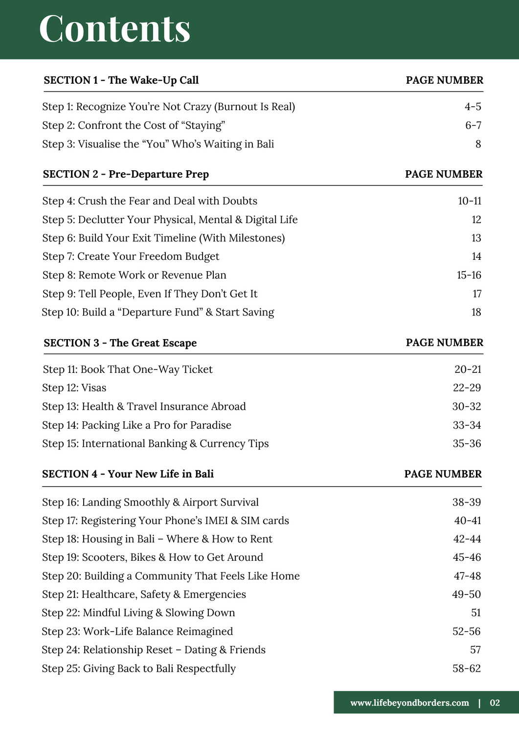 I've lived the Bali life for 18 months, and I know what it takes to go from burnt out corporate pro (In 2016) to full-time digital nomad (For almost a decade). Inside, you’ll get 25 game-changing steps to get you from “I can’t do this anymore” to “I’m building my new life; right now.”
