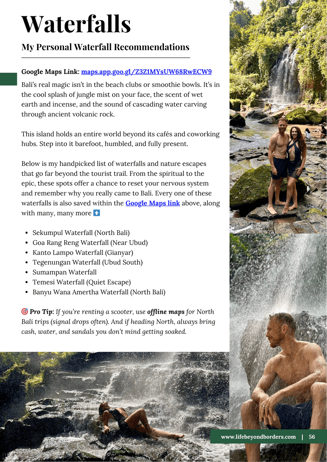 ✅ My personal Google Maps lists of Bali’s best cafés, coworking spaces, yoga studios, gyms, waterfalls, restaurants & more